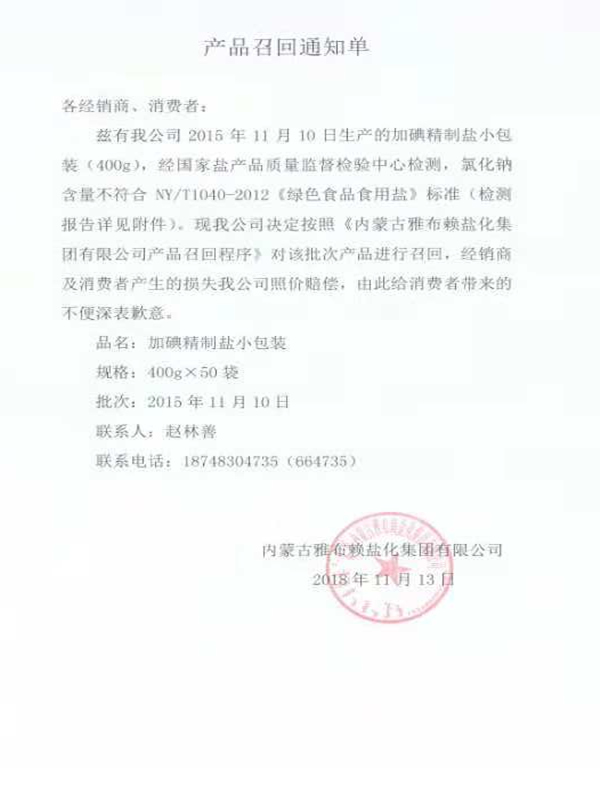 Welcome-开云(体育科技有限公司) 产品召回的通知