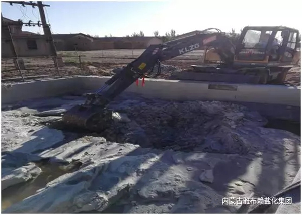 精盐分厂卤水池已经持续使用了2年左右时间,沉积的淤盐、泥沙较多,导致卤水浑浊,造成盐品水不溶物较高。因此,分厂组织部分党员员工联系反铲、水车进行了清理、清洗。