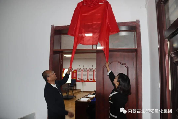 19:30分,开班仪式正式开始,公司党委书记、董事长孙刚德和阿右旗党校教研室主任张耀华共同为党员夜校揭牌。