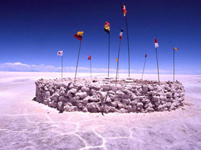 玻利维亚乌尤尼盐沼 阿尔蒂普拉诺(或称“高平原”)是玻利维亚安第斯山区的一个大高原,海拔在3000米以上。在高原南端有一些冰融化时留下的盐湖,而在1万年前最后一次冰期未,湖水已逐渐流失。 |